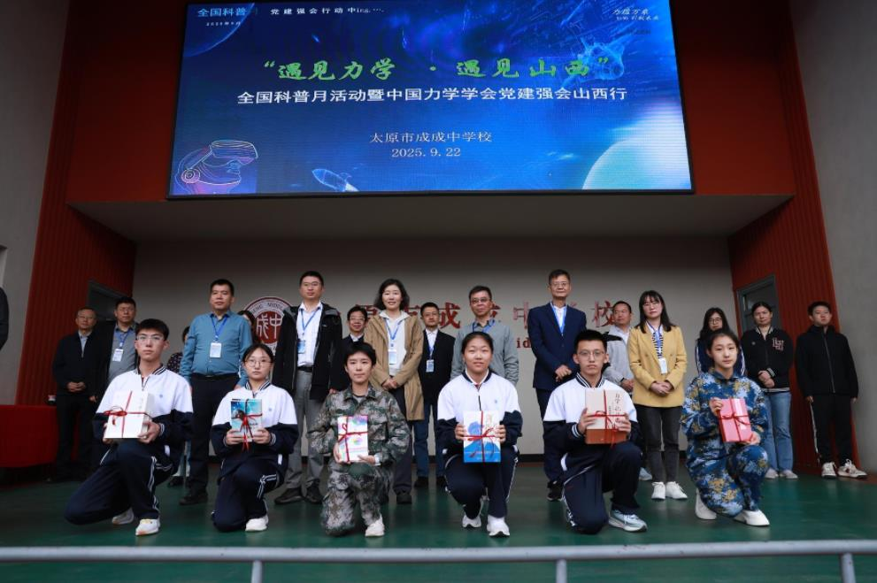 22日上午,中国力学学会党建强会山西行——“力智助学、协力同行”基础教育帮扶活动在太原市成成中学校举行,参会专家向学校赠送《力学记忆——中国科学院力学研究所院士遗稿》等书籍。