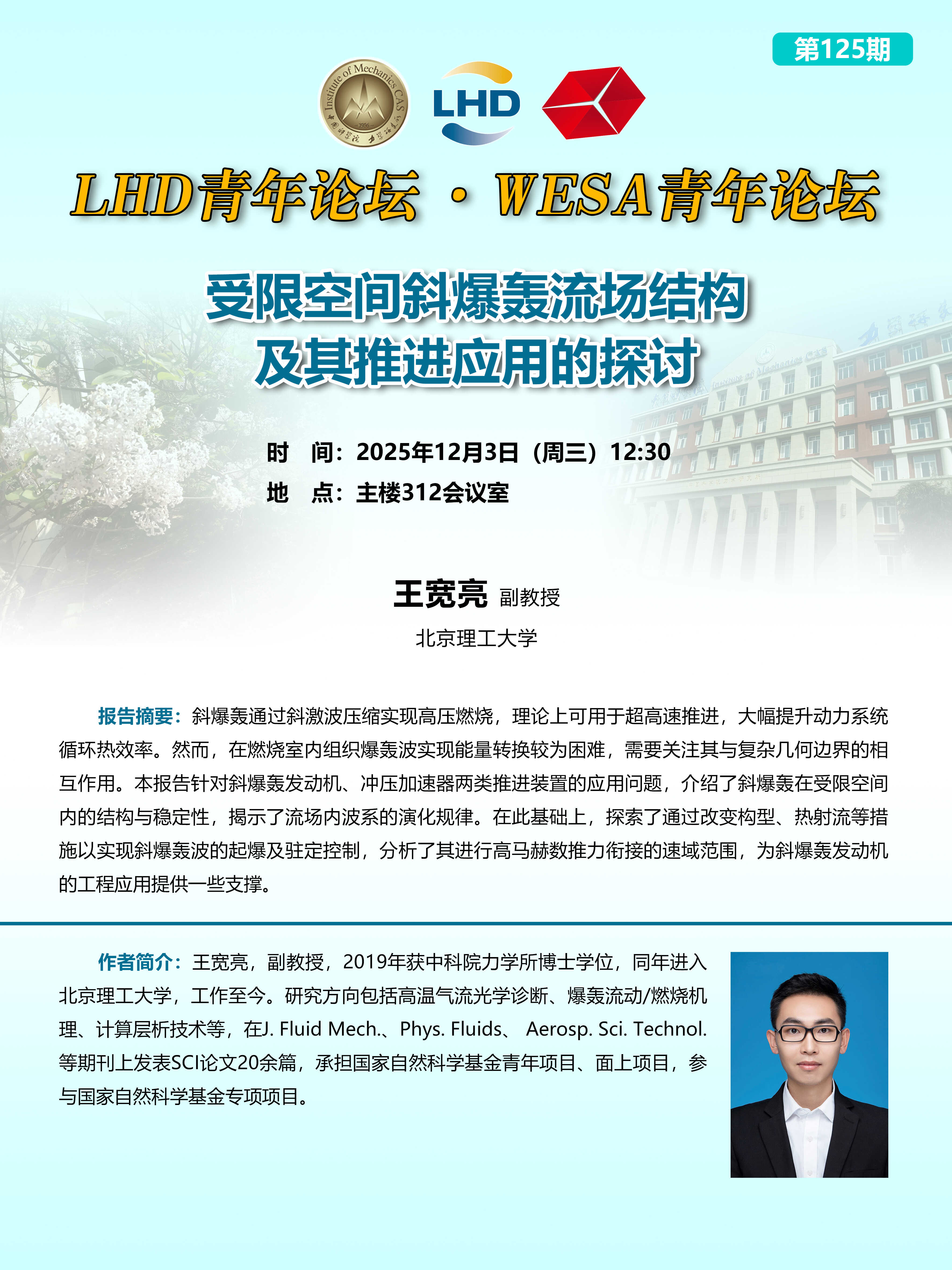 第125期LHD青年论坛·WESA青年论坛:受限空间斜爆轰流场结构及其推进应用的探讨