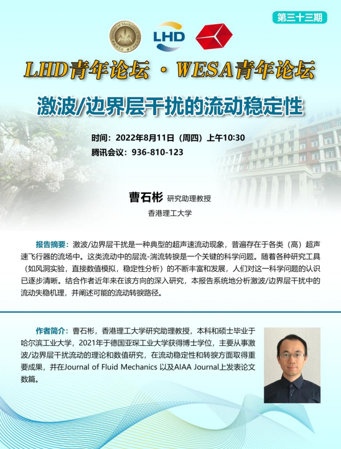 (LHD青年论坛&WESA青年论坛 8月11日 10:30 腾讯会议)激波/边界层干扰的流动稳定性